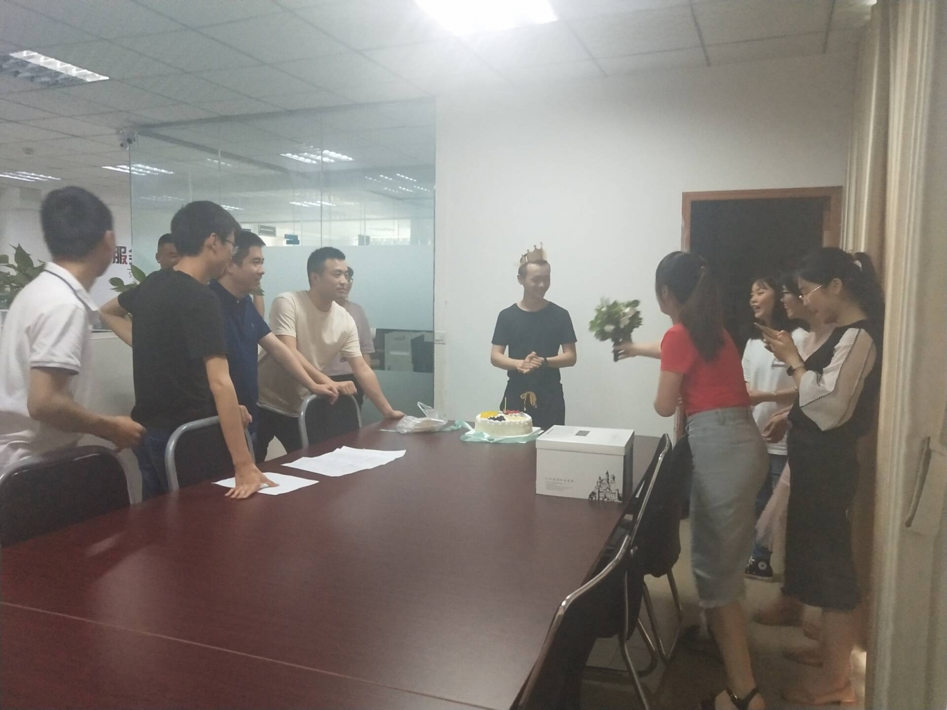 本次生日會(huì)在技術(shù)部的會(huì)議室內(nèi)舉行,由綜合辦負(fù)責(zé)組織,來自各部門的同事歡聚一堂,共同為本月的“壽星”慶生。上午九點(diǎn),生日會(huì)正式開始,伴隨著生日歌的旋律,同事們隨著節(jié)拍唱起了生日歌,結(jié)束后紛紛為“壽星”送上鮮花和或致以真摯的祝福。溫馨彌漫在整個(gè)生日會(huì)場(chǎng),燭光下洋溢著笑容的臉龐,體現(xiàn)了“不是一家人,勝似一家情”的溫馨氛圍。